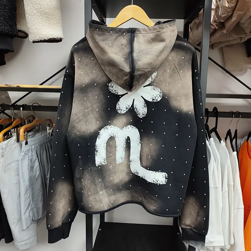 sun fade wash hoodies rhinestone hoodies