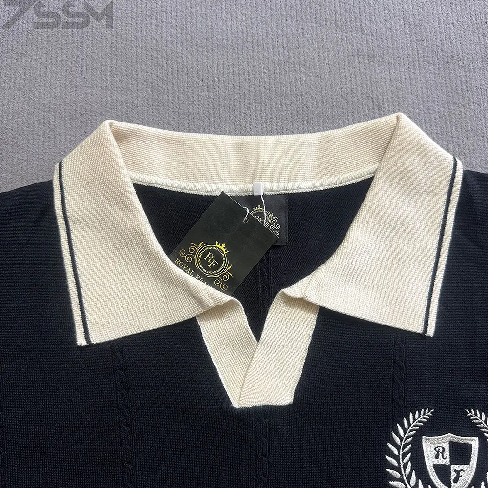 Custom Embroidery Logo Knitwear Jacquard Sweater Men Casual Striped Knitt Long Sleeve Rugby Polo Shirt for Men