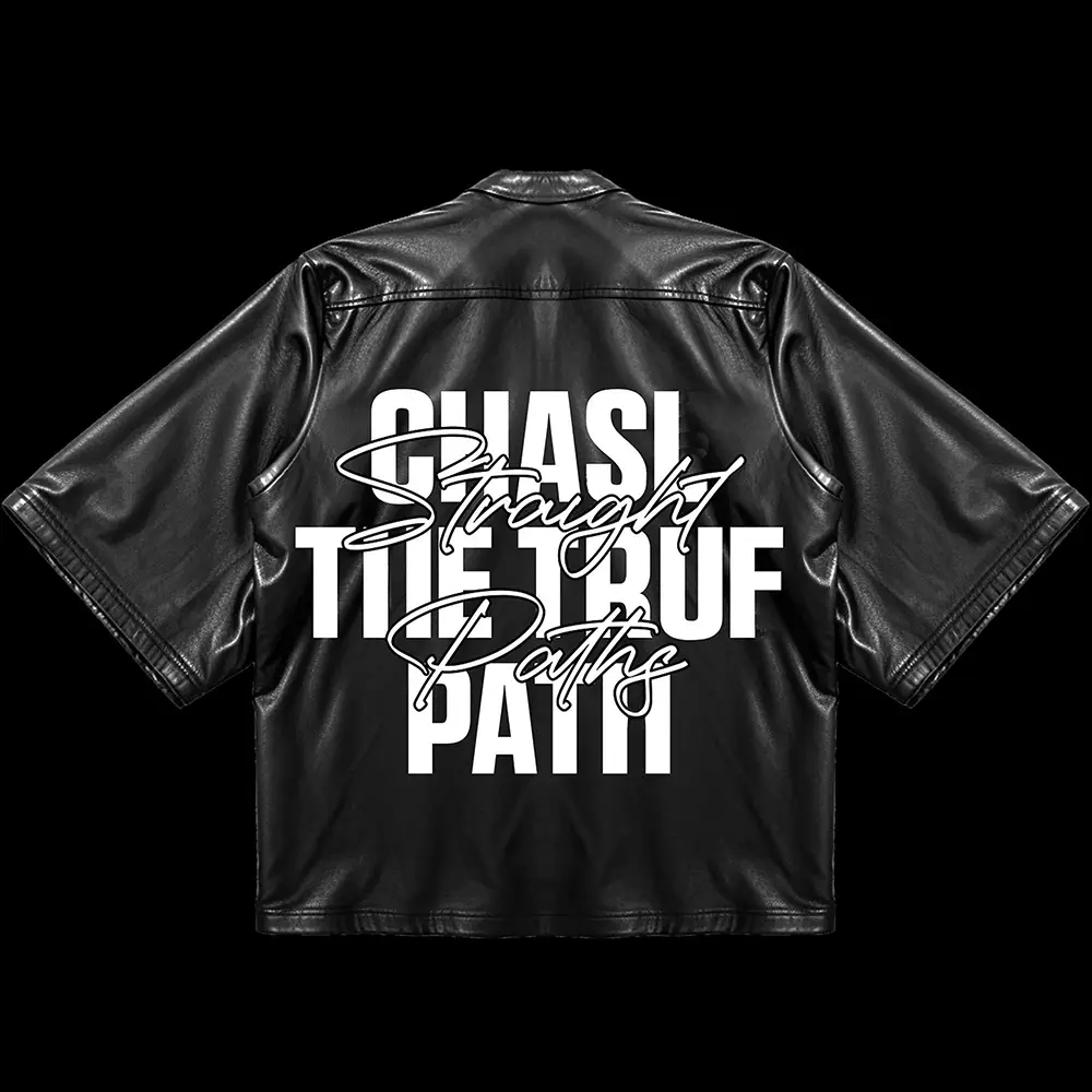 Custom Logo Summer Men's Boxy Pu Leather Zip-up Shirt with Lapel Collar and Blank Chest Pockets Short Sleeve Satin Fabric