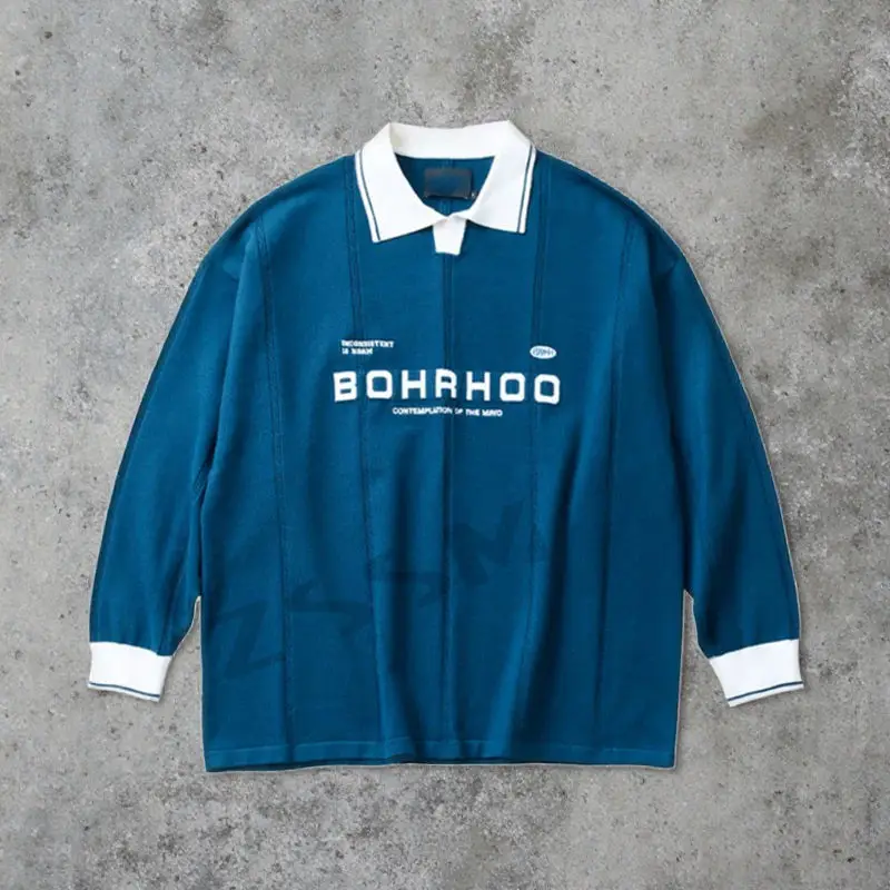 Wholesale Custom Embroidered Men's Rugby POLO Shirt XL Size Cotton Twill Knit Collar Casual Long Sleeve Striped Design
