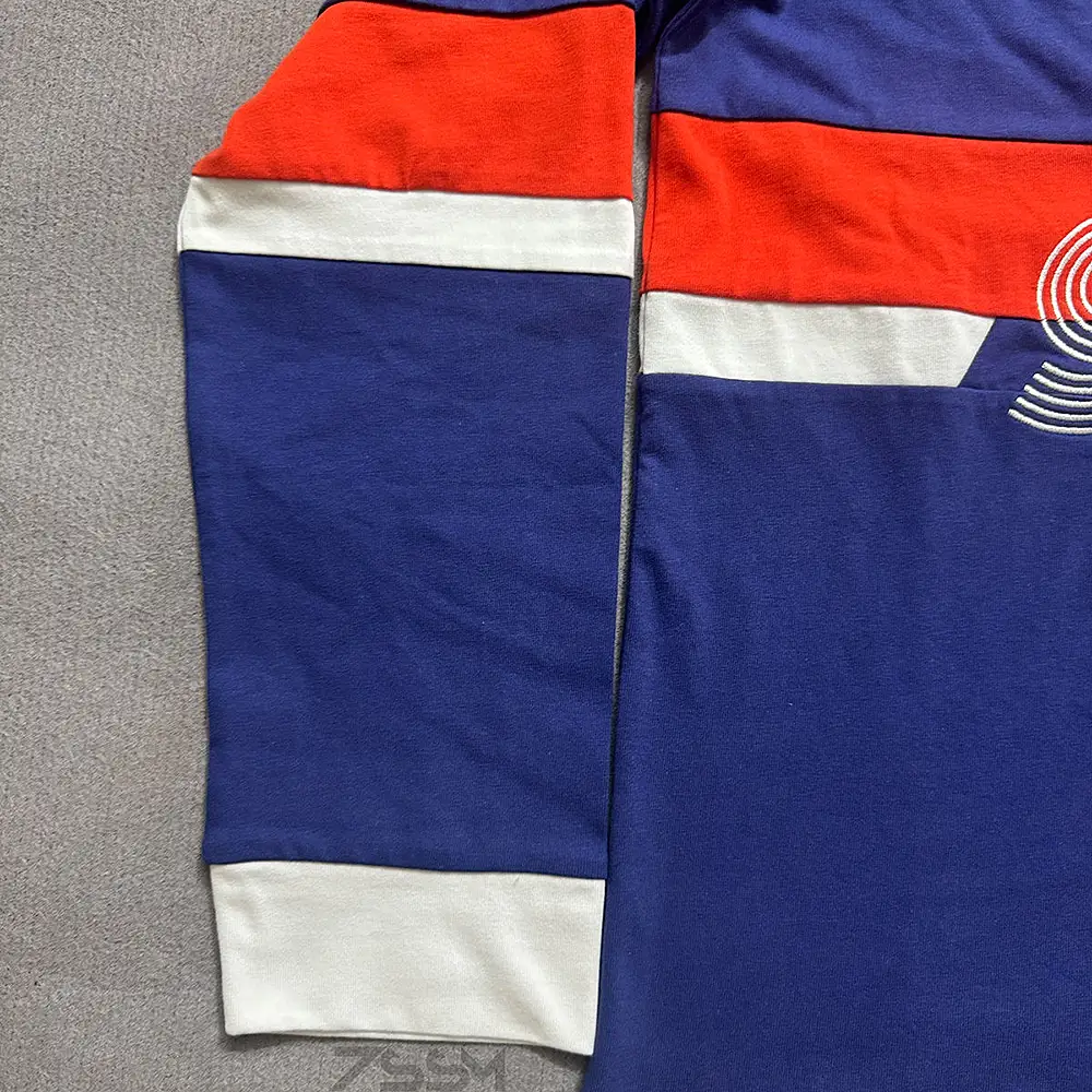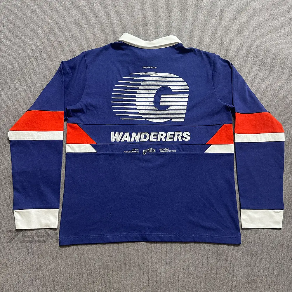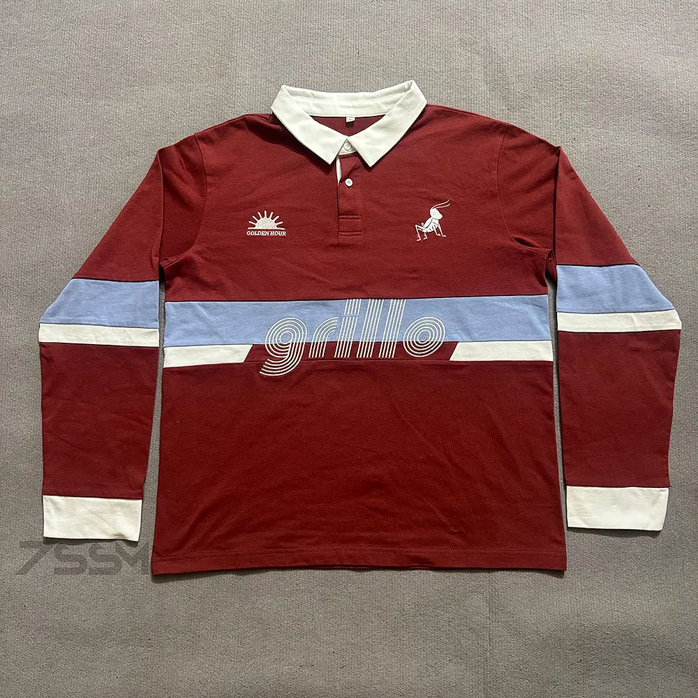 Custom Embroidery LOGO Cotton Sports Patchwork Striped Rugby Polos Man Oversized Boxy Long Sleeve Embroidered Polo Shirt for Men