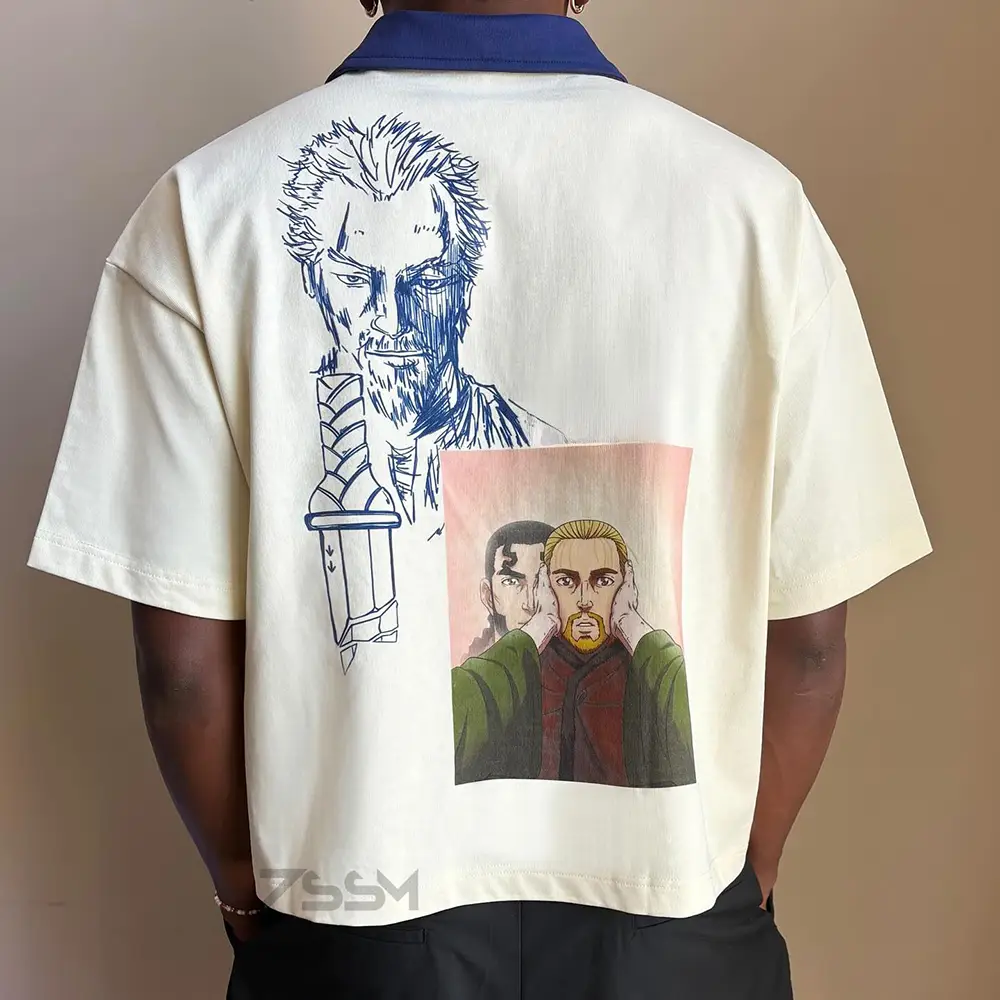 Streetwear Custom 100% Pure Combed Cotton Dtg Print t Shirt Turn Down Neck Button Oversized Graphic Short Sleeve Polo Shirt