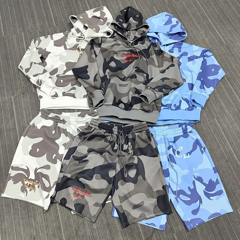 Men's New Arrival Velour Hoodie Short Set Breathable Windbreaker with Zip Autumn Two-Piece Printed Tracksuit Outerwear Set