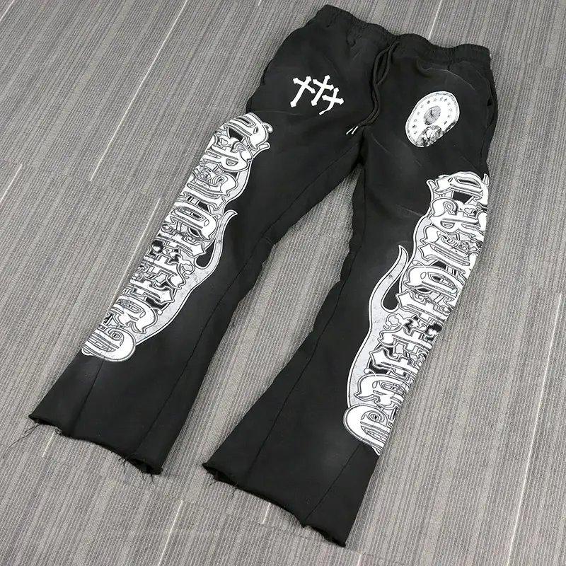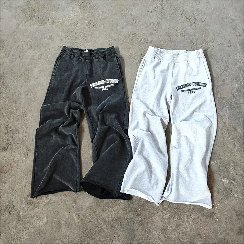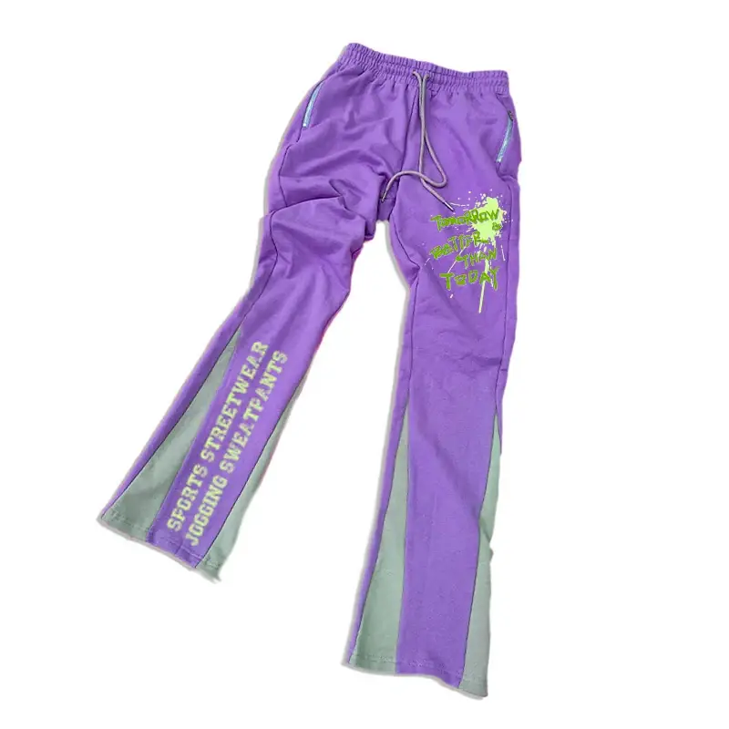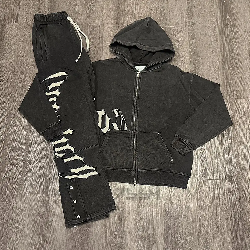 Men's Custom Flared Sweatpants Hoodie Set Streetwear Acid Wash Side Stripe Jogger Zip-up Breathable Applique Embroidery Patch