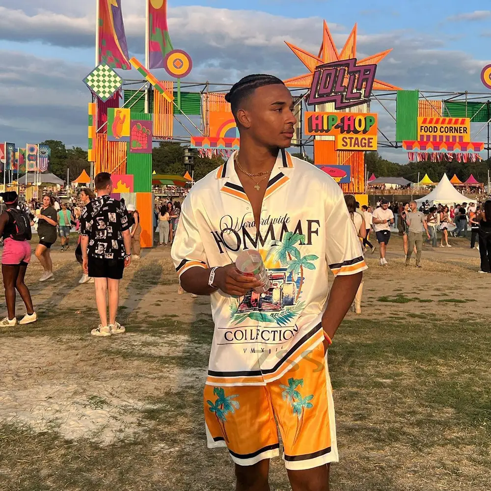 Custom Hawaiian Beach Summer Casual Men's Satin Fabric Button up Shirt and Short Sets Quick Dry Digital Printing