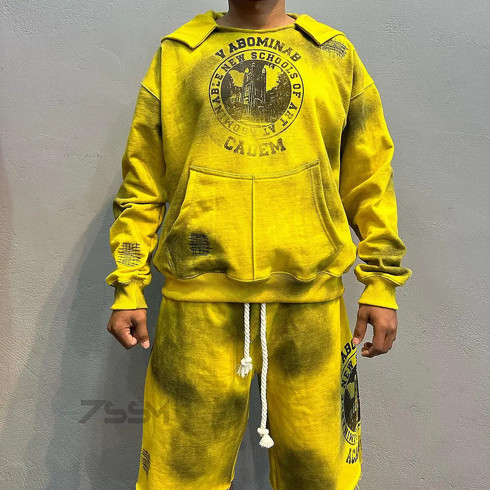 Men's Custom LOGO Digital Print Cotton Jogger Plus Size Winter Terry Vintage Suits Cotton Embroidered Baggy Shorts and Hoodie