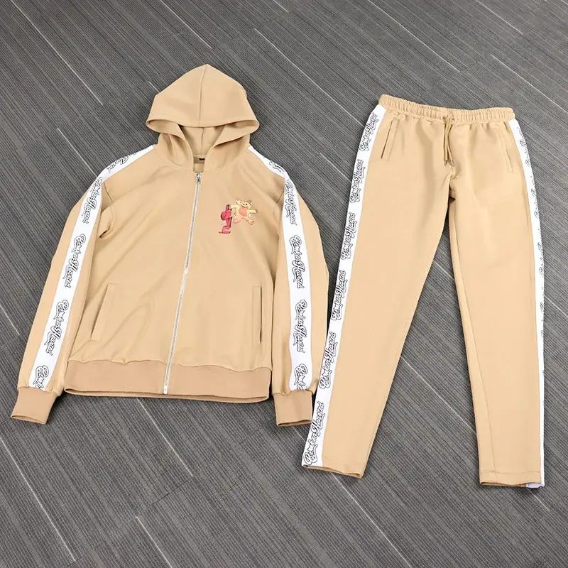Custom Blank Full Print Rhinestone Zip up Hoodies Baggy Double Layer Waist Sweatpants Side Striped Jogger Set Track Suit for Men