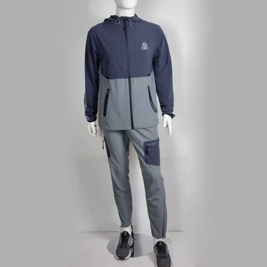 Custom Two Piece Splice Short Jacket Set Zip up Jacket Sweatsuit and Nylon Sweat Pants Shorts Tracksuit for Men