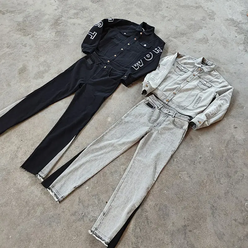 Manufacturer Custom 2 Piece Streetwear Vintage Jogging Zip up Tracksuit Button Patch Embroidery Sweatpants and Hoodie Set