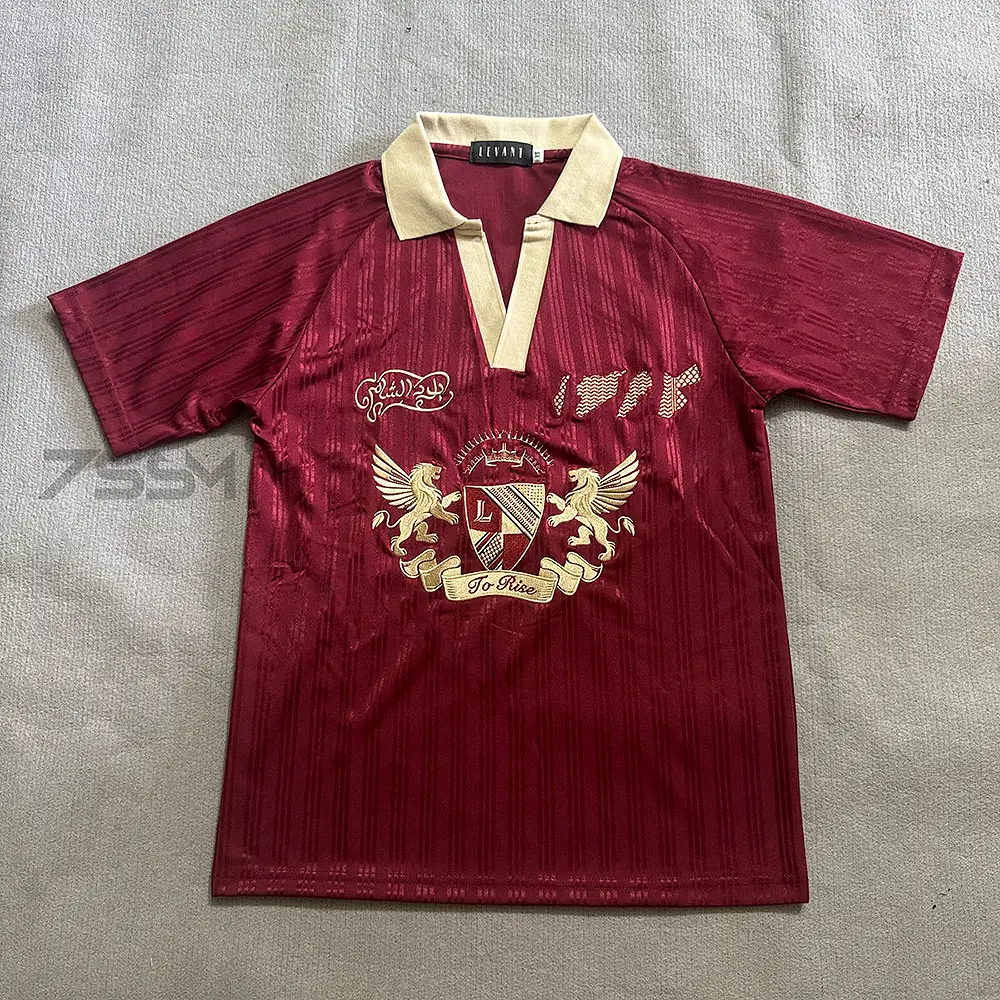 Wholesale Men's Polyester Retro Soccer Jerseys Custom Embroidery Oversized Boxy Streetwear Striped Short Sleeve Polo Shirts