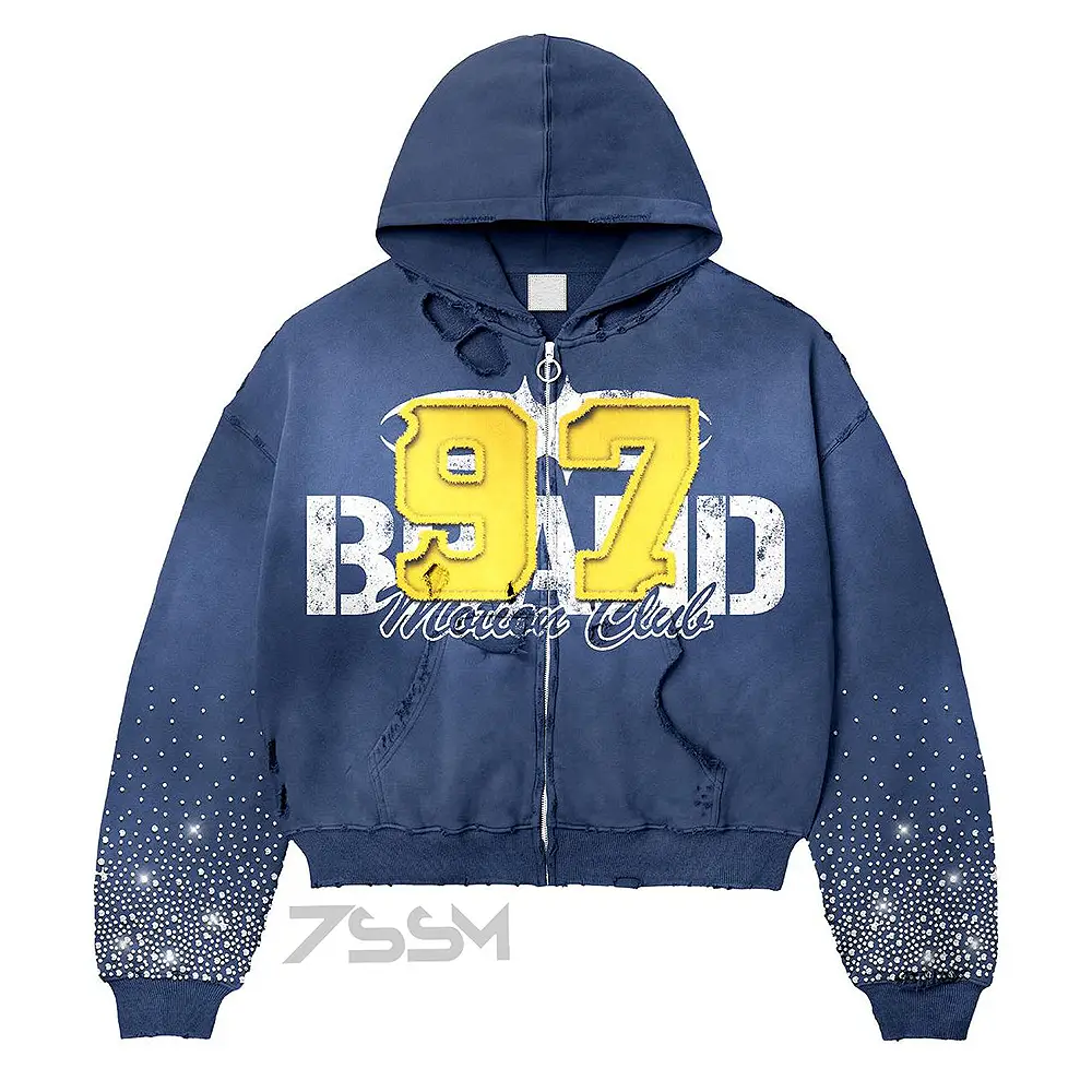 Custom Men's Track Suits Heavyweight Fleece Cotton French Terry Oversized Winter Rhinestone Hoodie and Flared Sweatpants Sets