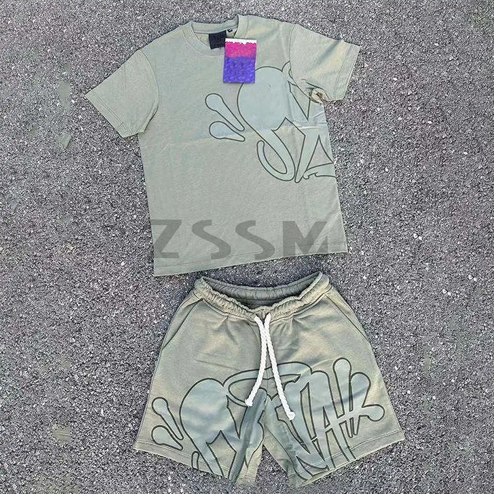Custom Logo High Quality Summer Fashion 100% Cotton Men's Oversized Two-Piece Casual Shorts Set Printed Pattern