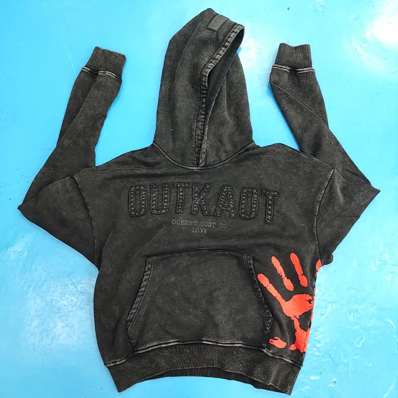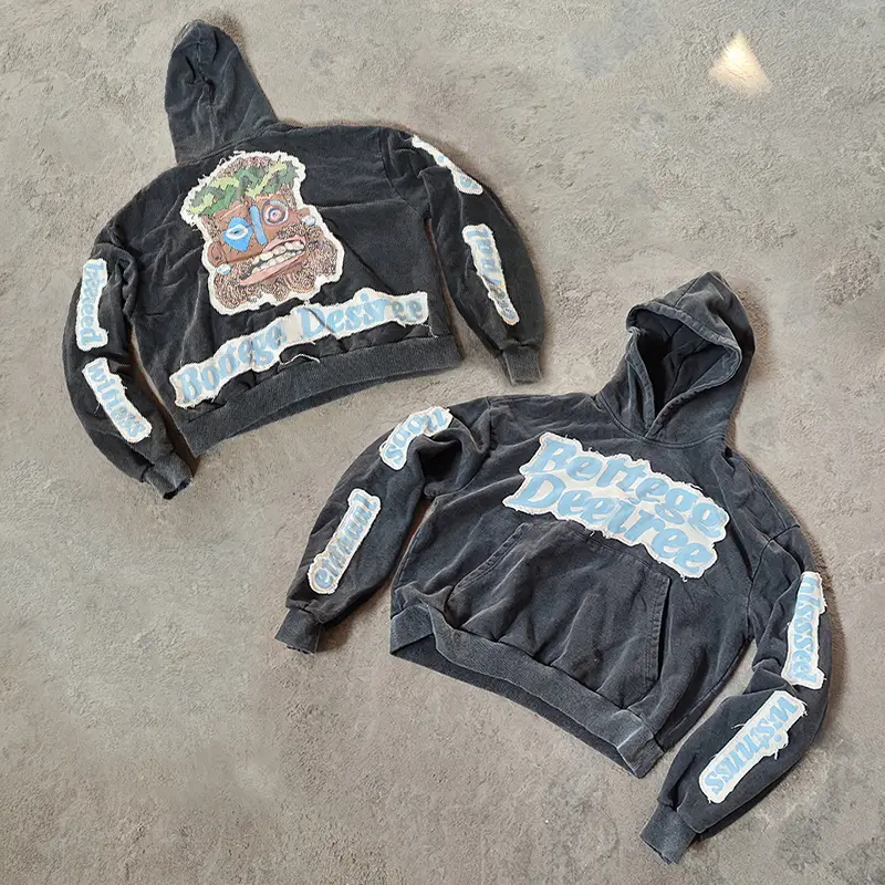 distressedappliqued embroidery hoodies acid wash hoodies